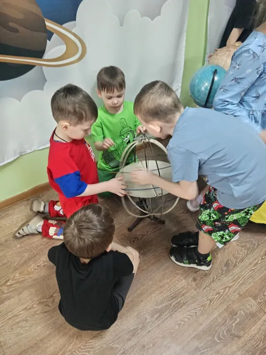 С большим любопытством дети изучали устройство и принцип работы армиллярной сферы — древнего прибора, который помогал учёным следить за звёздами.
