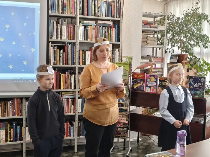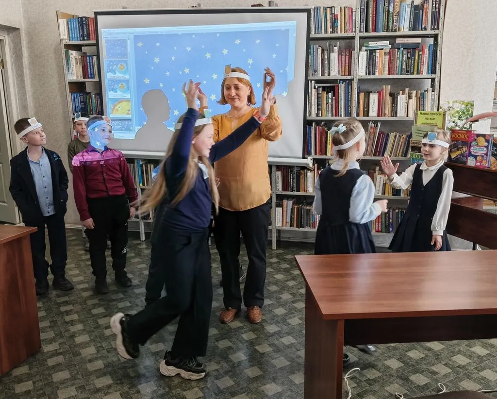 Юные космонавты восстановили хронику легендарного полёта Юрия Гагарина: расставили все этапы по порядку от «старта» до «приземления». А потом заиграла музыка, и библиотека превратилась в звёздную гавань — все дружно сыграли в зажигательную игру «Я ракета!»